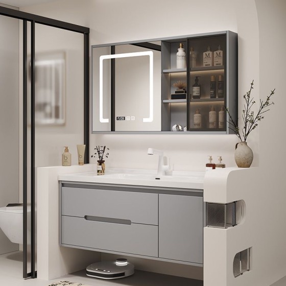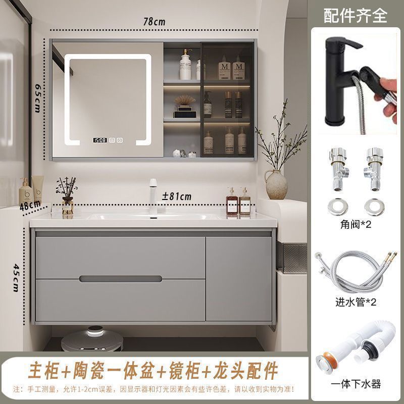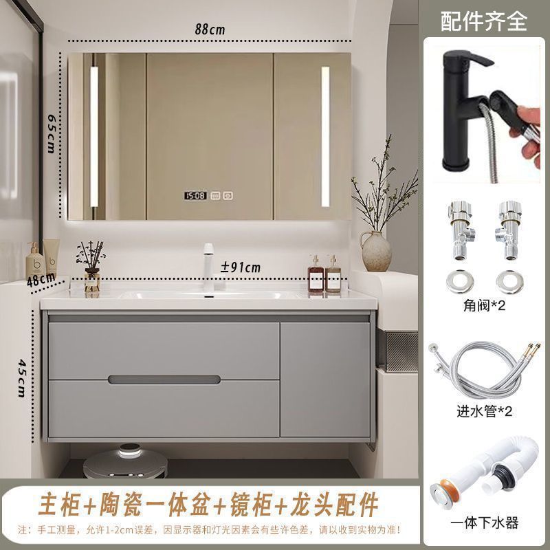 Oak bathroom cabinet door panel, bathroom hand washing and washbasin combination, washbasin ceramic integrated