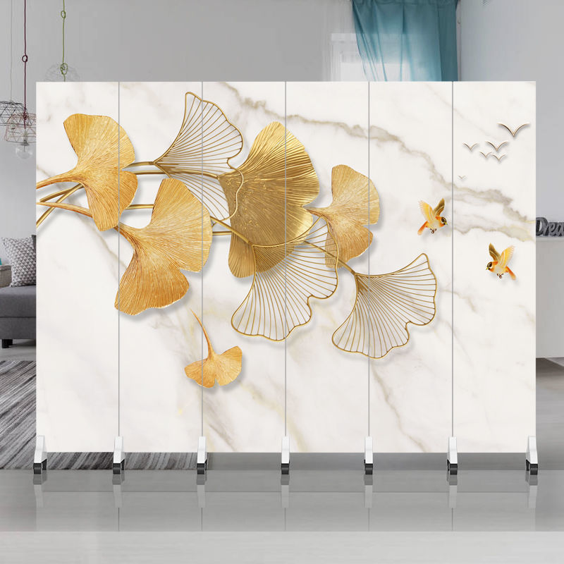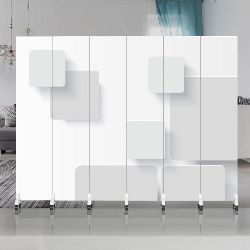 Screen partition office folding mobile simple modern home living room hotel pure white ribbon wheel folding screen