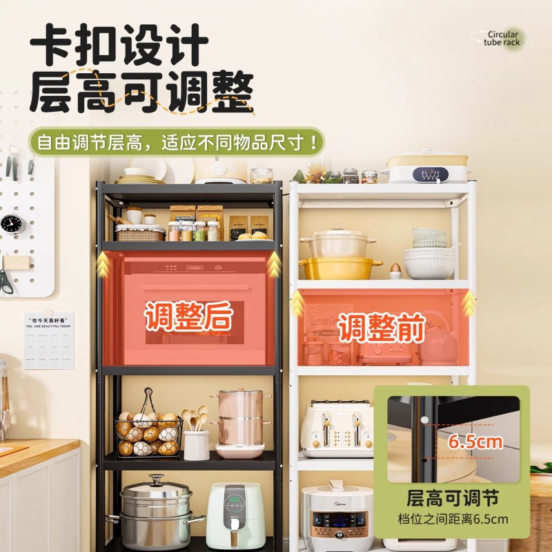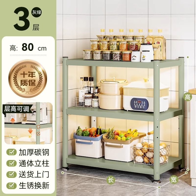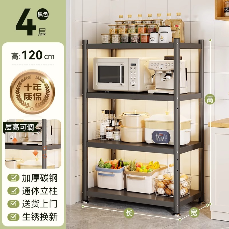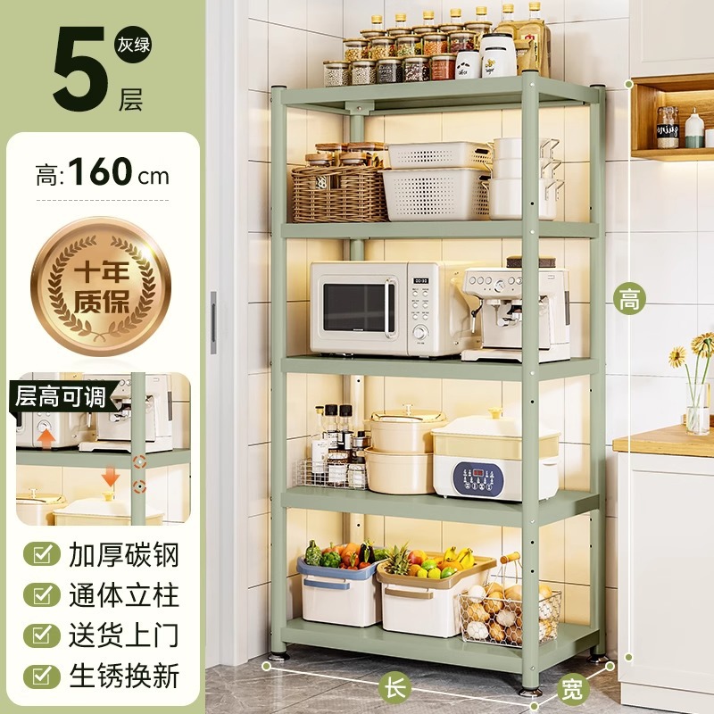 Kitchen storage rack, multifunctional microwave oven, fruit and vegetable storage rack, multi-layer floor to wall steel miscellaneous shelf