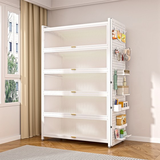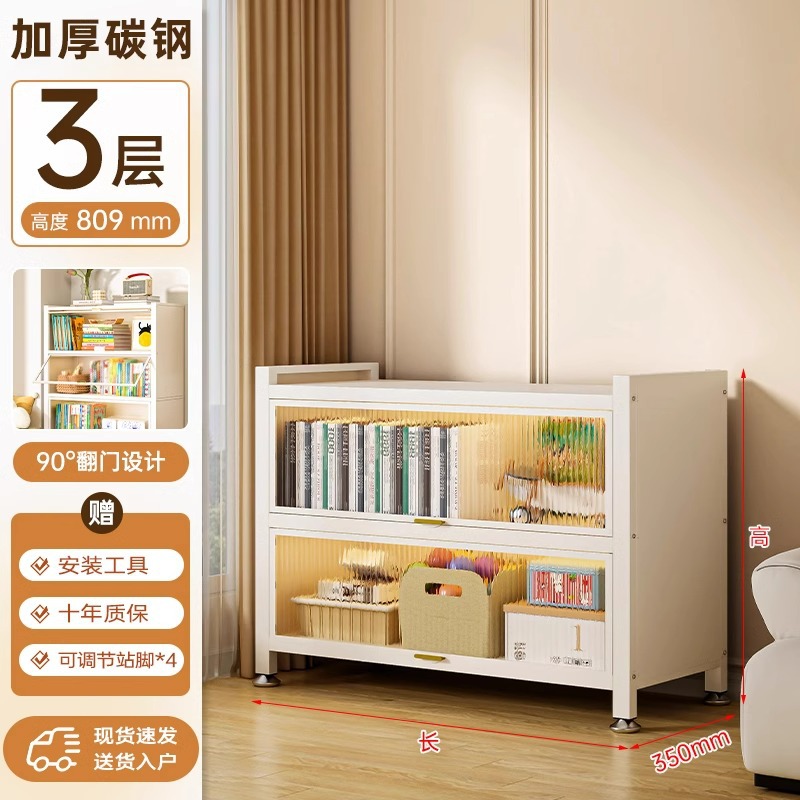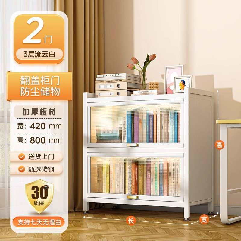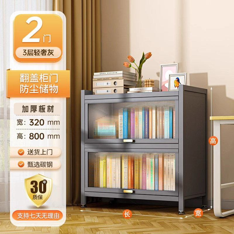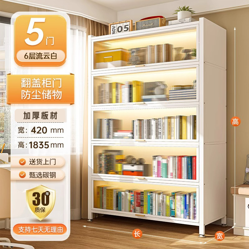 Home Bookcase with Doors, Dustproof Storage Cabinet, Children's Multi layer Floor standing Iron Bookshelf, Living Room Storage, Steel Storage Rack
