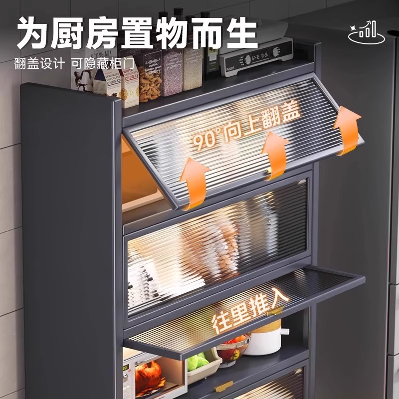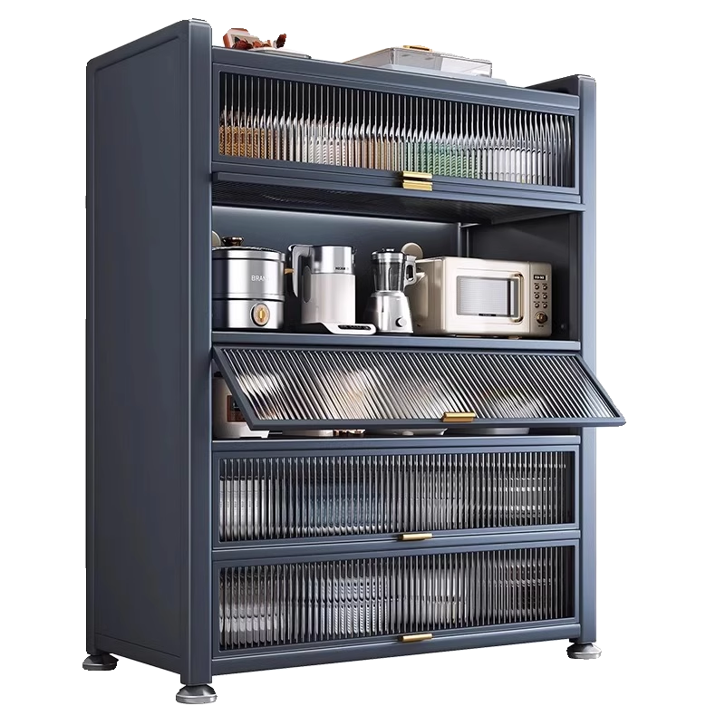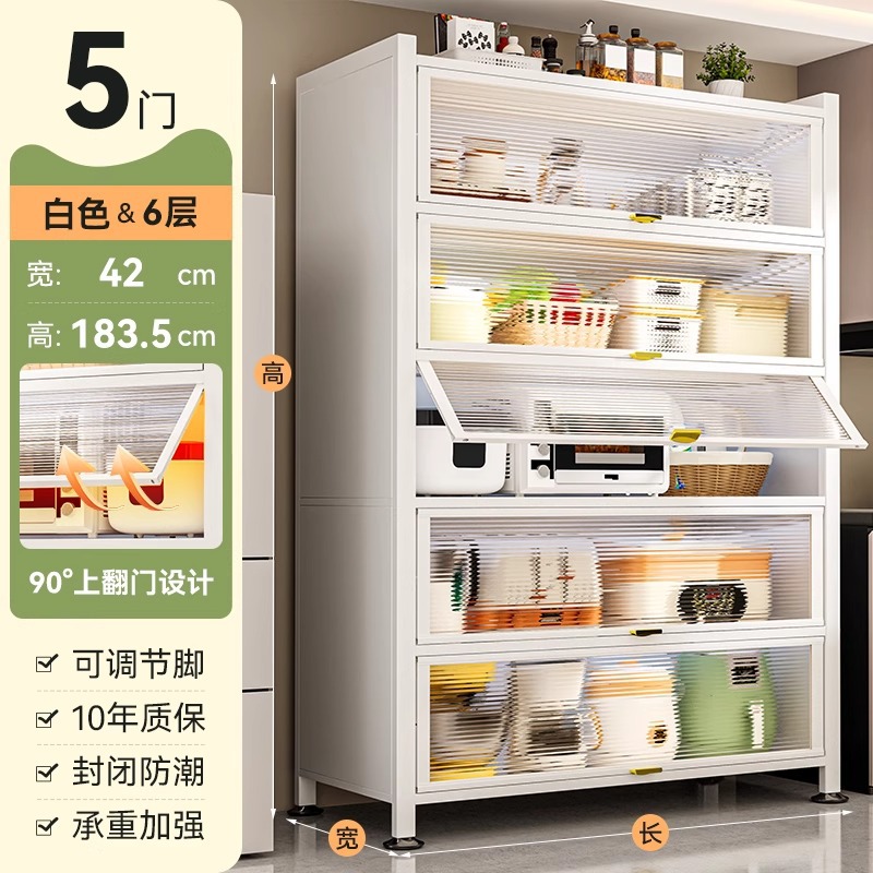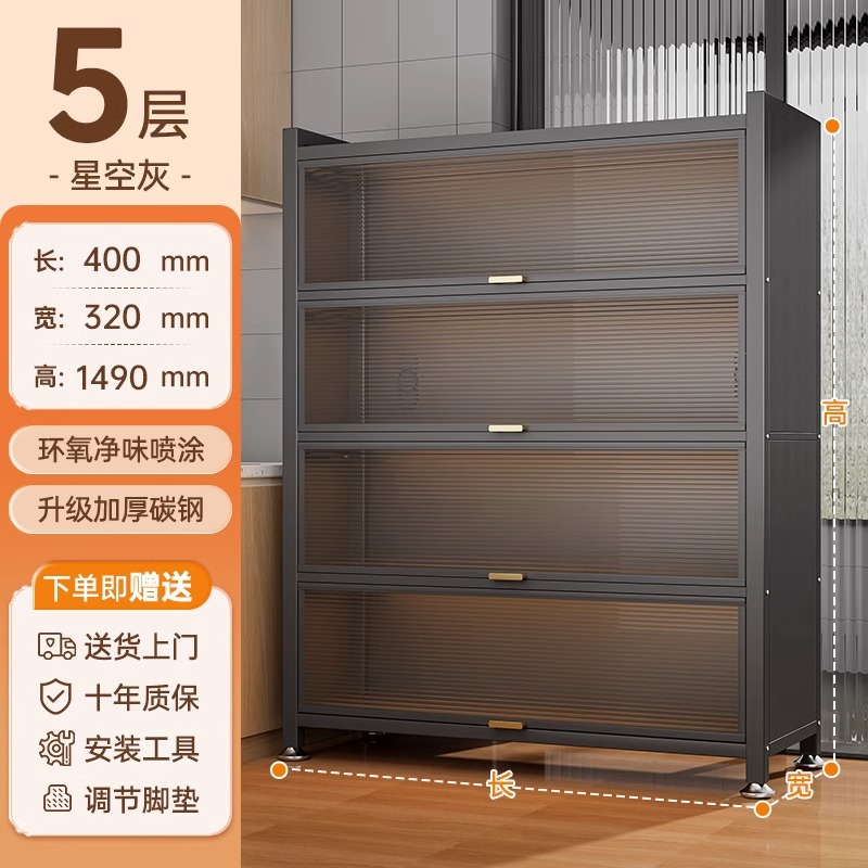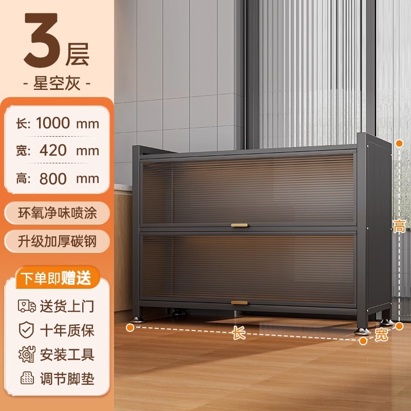 Kitchen dustproof storage cabinet shelf, floor standing multi-layer cabinet with door, microwave oven, household carbon steel storage cabinet