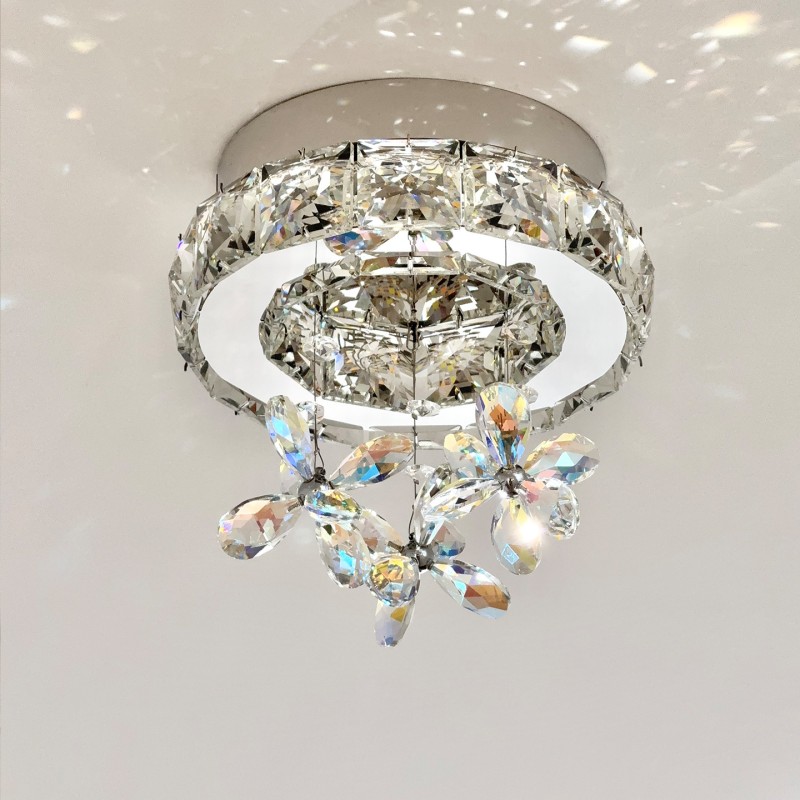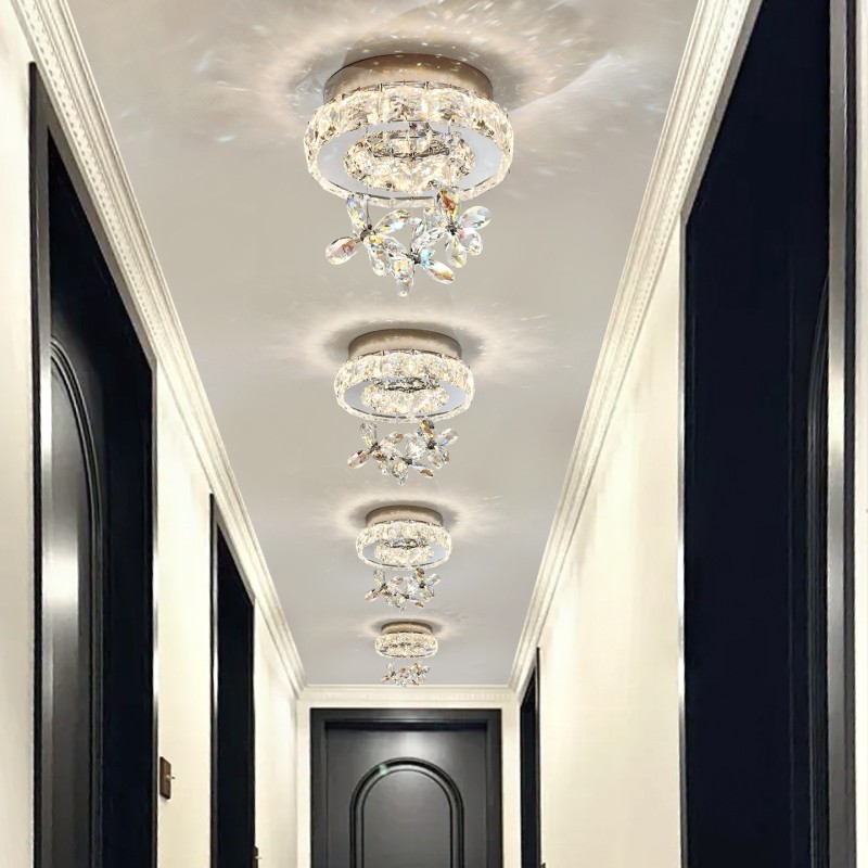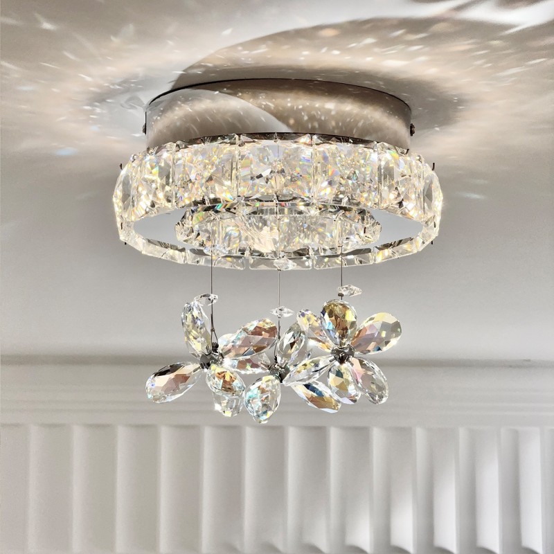 French style light luxury crystal ceiling light, entrance hallway light, modern simple and atmospheric flower decoration eye protection lamp