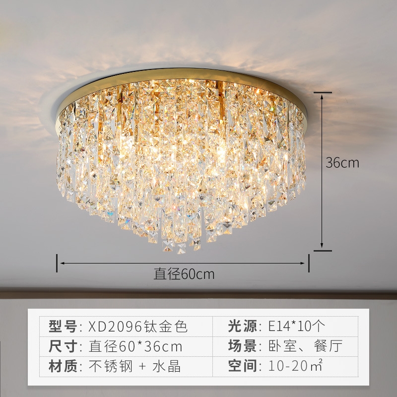 Crystal lamp, circular ceiling lamp, modern and simple master bedroom lamp, room lamp, LED living room large lamp, light luxury style