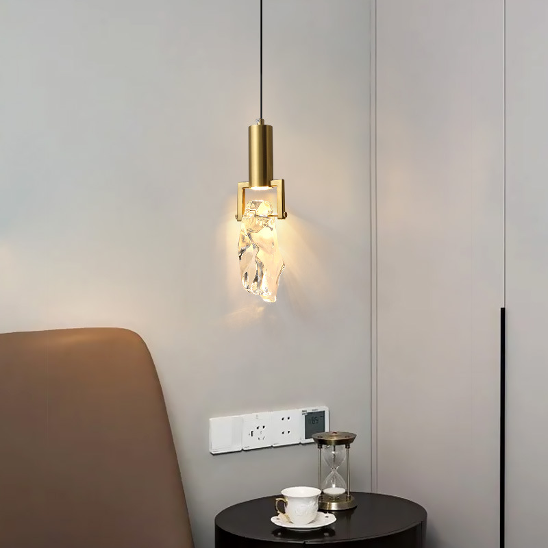 Modern minimalist bedside pendant light Nordic light luxury bedroom light creative crystal lighting, popular internet red light ice cube light