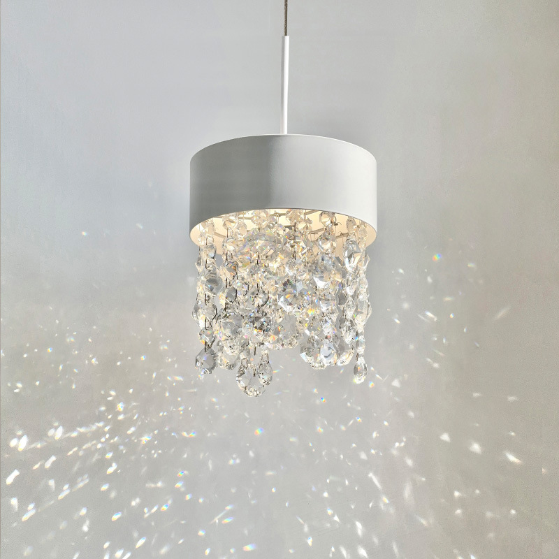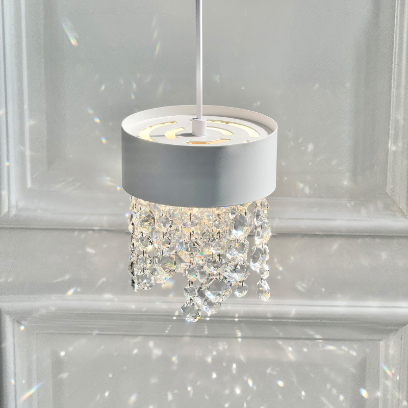 French crystal pendant light, creamy style master bedroom bedside lamp, Italian style light luxury high-end feeling living room entrance hanging line lamp