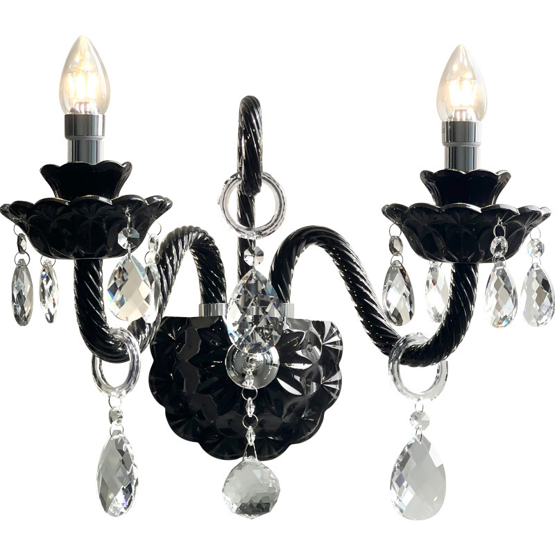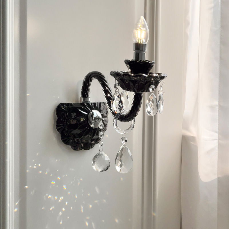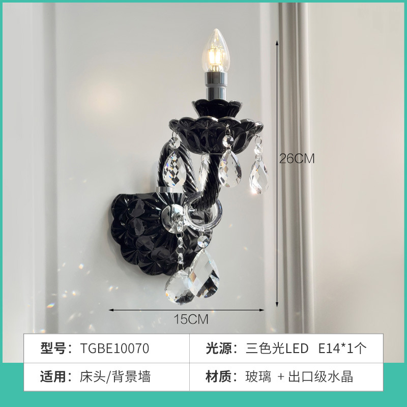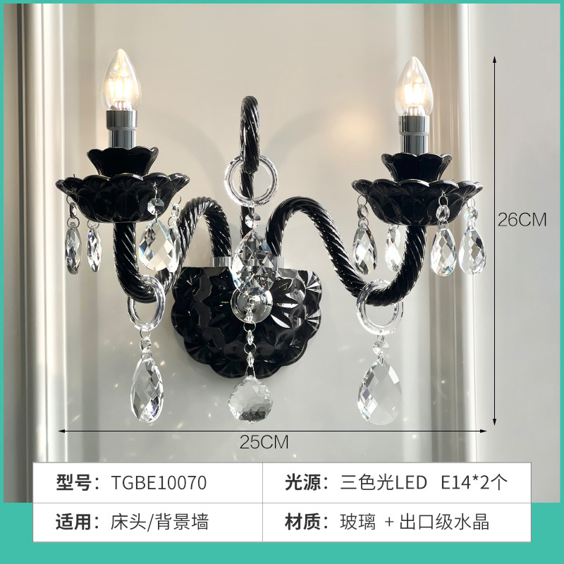 Vintage French style black crystal wall lamp, living room background wall decoration wall lamp, modern light luxury bedroom bedside lamp