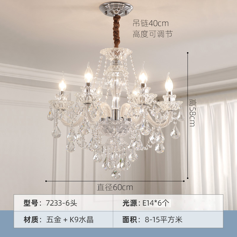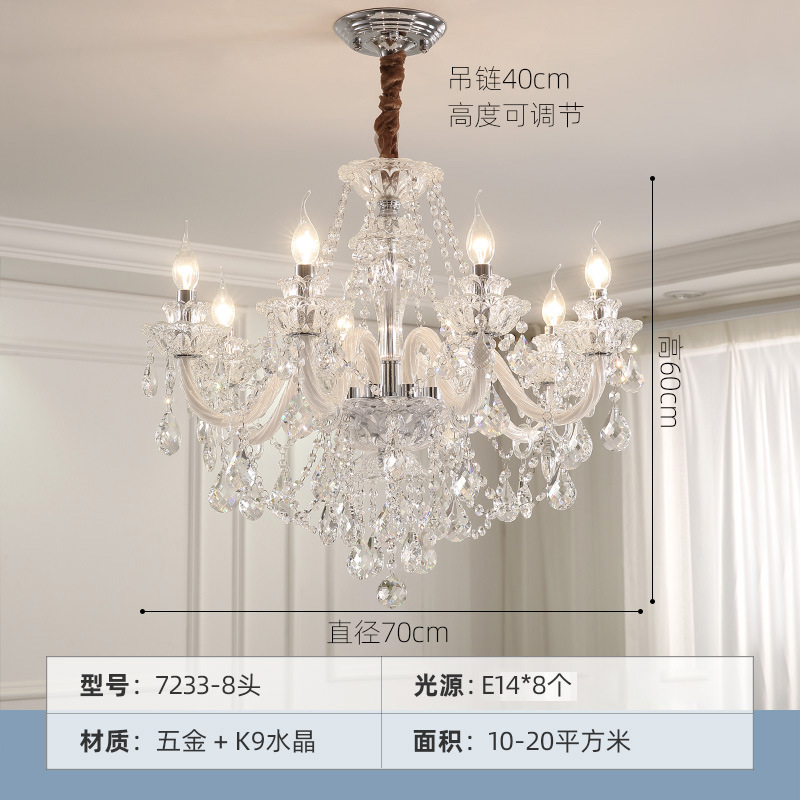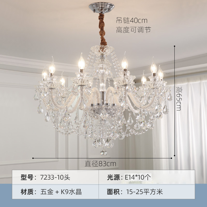 French luxury chandelier villa living room lamp dining room lamp bedroom high-end atmospheric crystal chandelier creative personality art