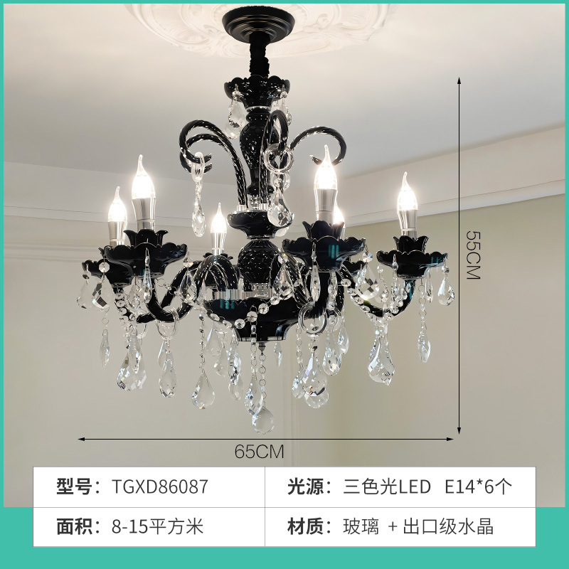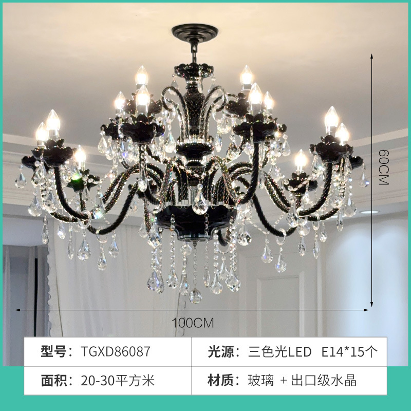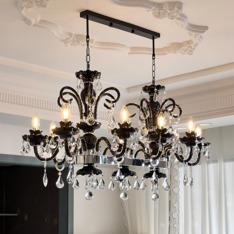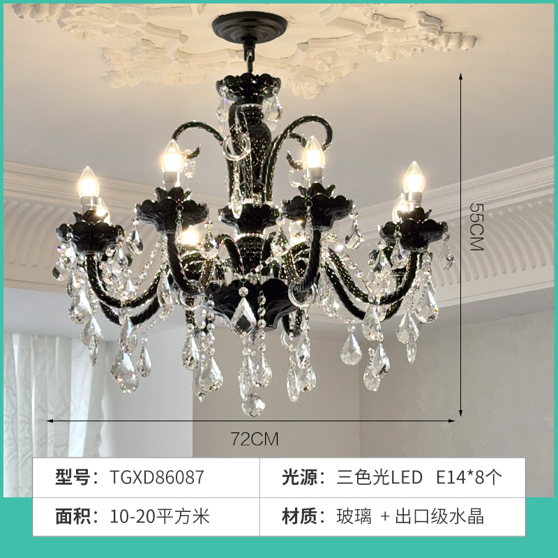 French style living room pendant light, retro crystal light, black antique style bedroom master light, high-end designer dining room lighting fixtures