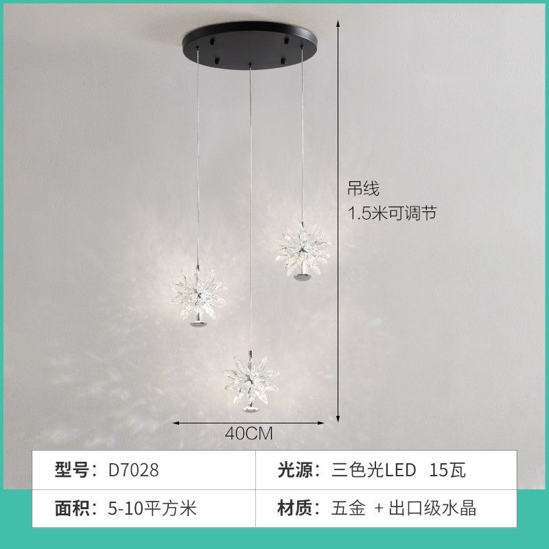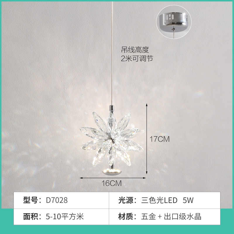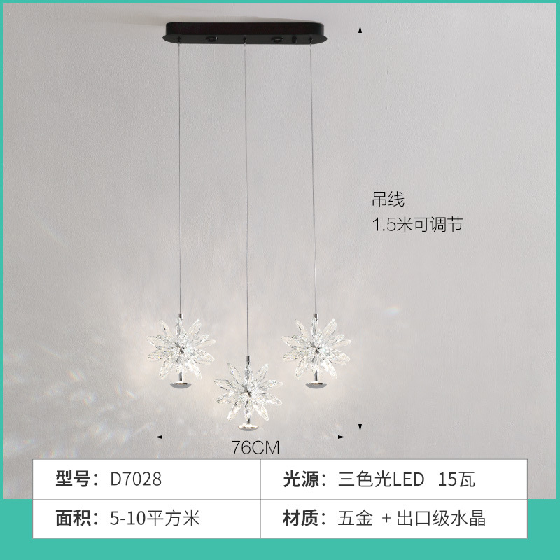 Light luxury crystal pendant lamp, modern minimalist bedroom bedside lamp, designer's creative French restaurant hanging line lighting fixture