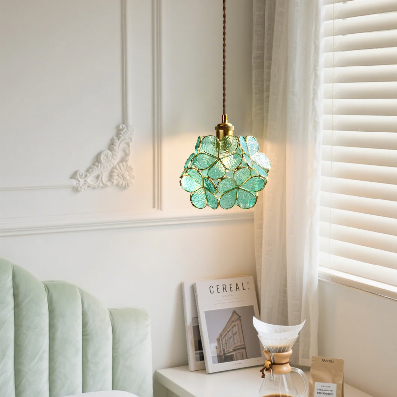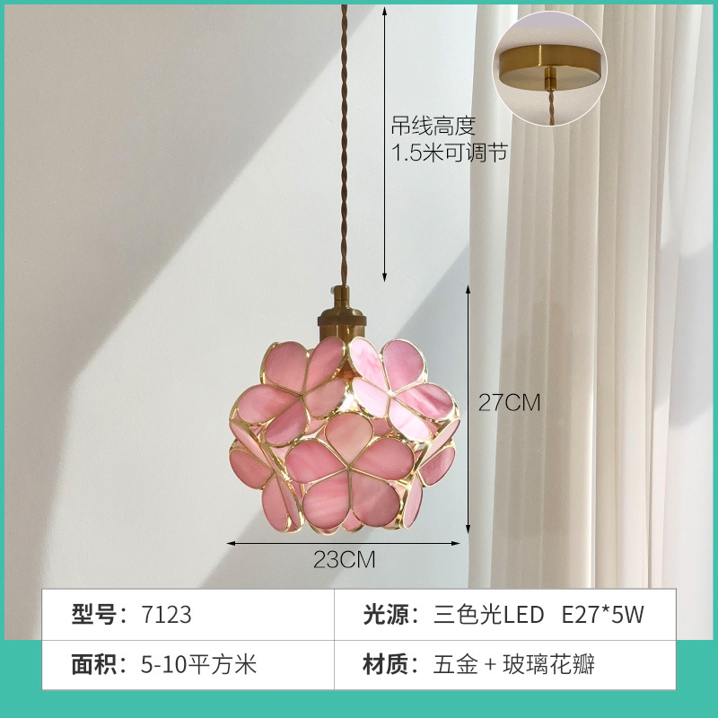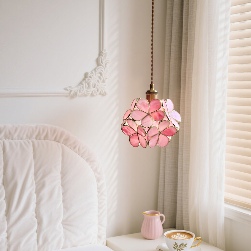 French romantic bedroom lamp, princess bedroom bedside small pendant lamp, modern restaurant bar counter, dressing room, embroidered ball flower pendant lamp