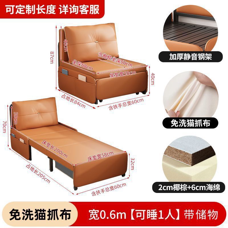 Folding sofa bed integrated dual-use foldable new balcony multifunctional living room small unit double single person telescopic
