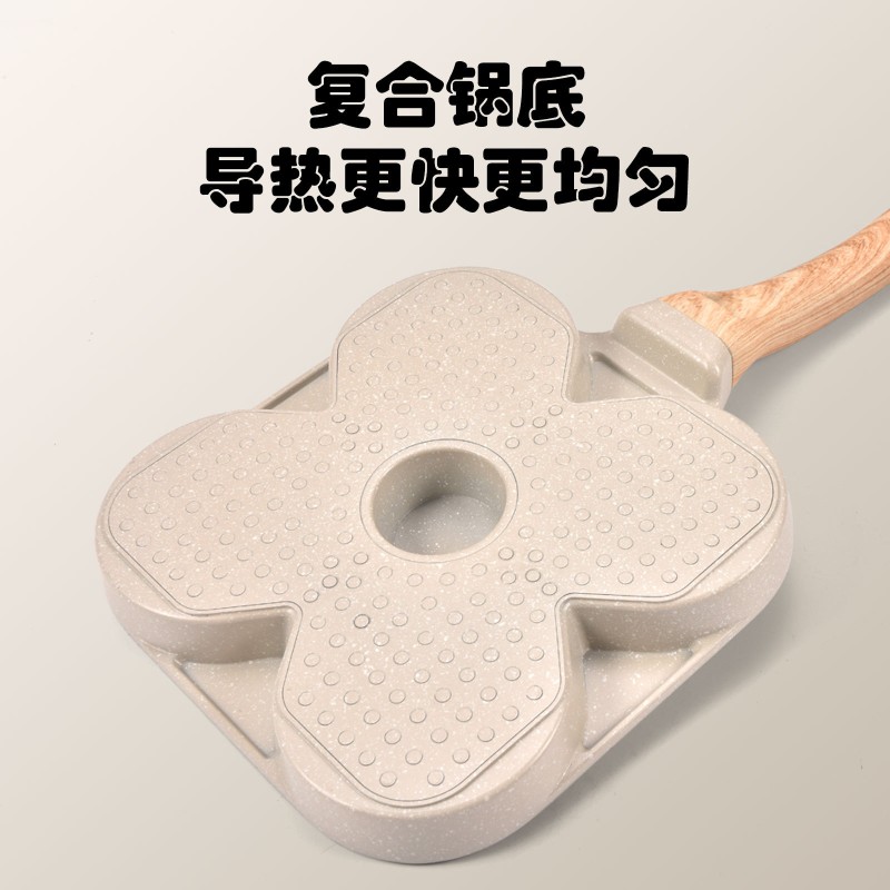 Cross border hot selling egg burger pan, household fried egg pan, double bottom non stick pan, four hole steak frying pan, die-casting flat bottomed pan